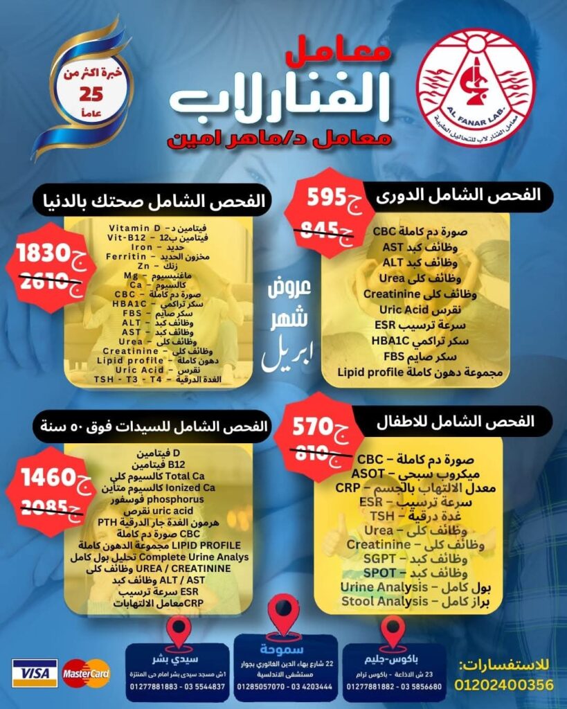 © معامل الفنار لاب للتحاليل الطبية د. ماهر أمين2026 | جميع الحقوق محفوظة